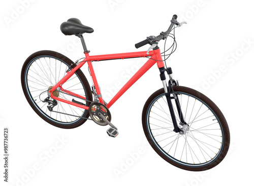 Obraz premium Red bicycle, side top view. Black leather saddle and handles. Png clipart isolated on transparent background