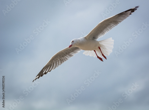 © Nathan McClunie, Fototapeta premium Red Billed Gull in flight at beach
