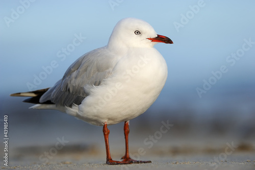 Naklejka premium Red-billed Gull (Larus novaehollandiae) standing on beach.