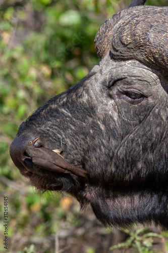 © mrallen, Fototapeta premium Red-billed oxpecker on a Buffalo - Botswana - Africa