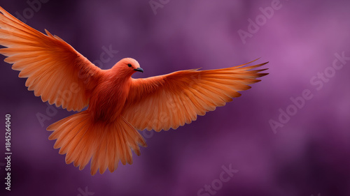 © SashaMagic, Obraz premium Red bird in flight against a vibrant purple background.