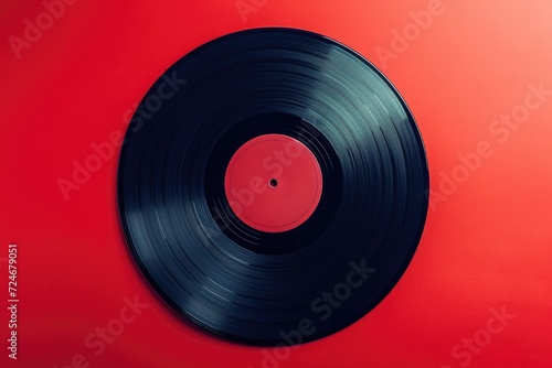 Obraz premium Red blank label isolated on long play black vinyl LP album disc