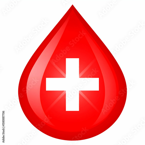 Fototapeta premium Red Blood Drop Icon with Glowing White Cross