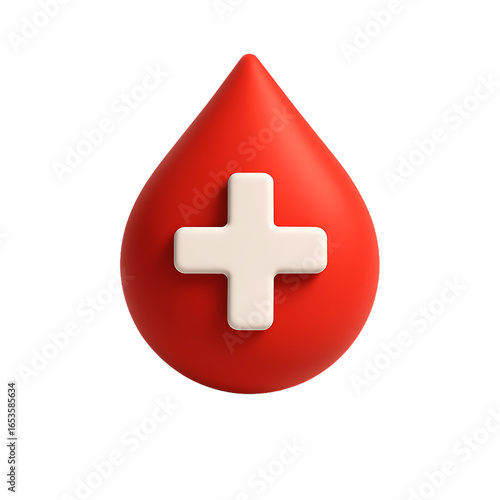 © Grafix71, Fototapeta premium Red blood drop with white cross isolated image