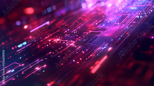 © Vicky, Fototapeta premium Red blue digital background technology technological operations neural networks AI big data transmission encryption archives audio visual science cyber connection technology computer coding virus