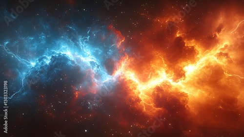 © Utpal, Obraz premium Red blue lightning explosion high resolution hd picture