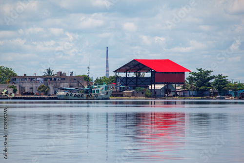© Alexandre, Obraz premium Red boat dock in bahia de Cienfuegos, cuba
