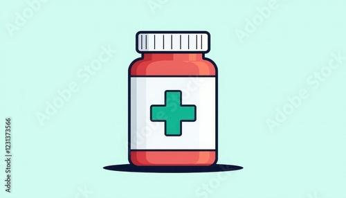 Obraz premium Red Bottle with Green Plus Sign Medical Solution Illustration