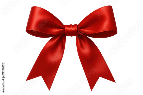 Fototapeta premium Red bow silk ribbon creating festive gift decoration design element with...