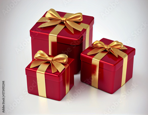 © Zoya Miller, Obraz premium Red boxes with a gold bow. Generative ai
