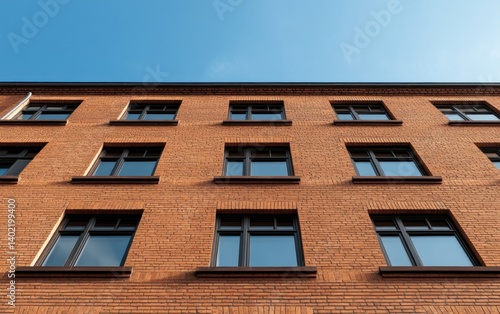 © creatfive, Obraz premium Red Brick Building with Evenly Spaced Windows