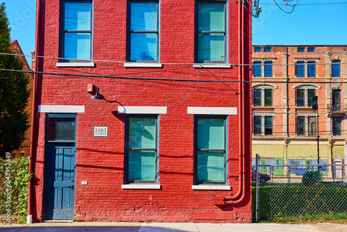 © Nicholas J. Klein, Obraz premium Red Brick Facade 1661 Hamer Urban Motion Eye-Level