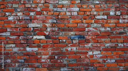 © mstislava, Naklejka premium red brick wall background. Grunge texture.