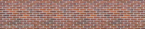 © OneClic, Fototapeta premium Red brick wall background, wide old brick wall banner, brickwork panorama