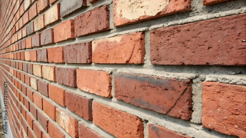 Obraz premium Red brick wall close-up texture background, construction and architecture...