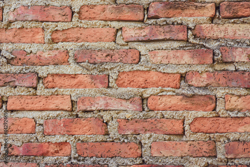 © pornchai, Obraz premium Red brick wall constructed using cement to connect