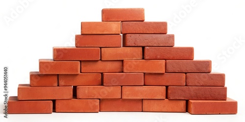 © NorthStar Creations, Obraz premium Red Brick Wall Construction - Stack of 15 Clay Bricks on a White Background - Simple Construction, Basic Foundation Building