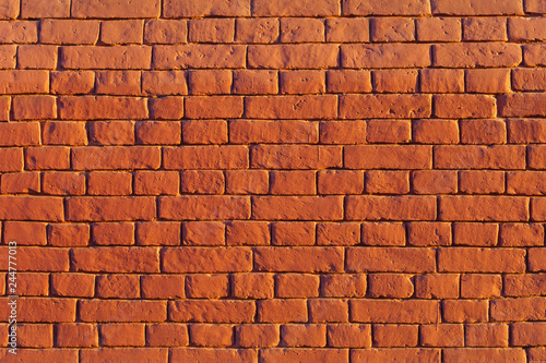 Fototapeta premium Red brick wall illuminated by the sun, texture