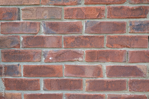 Obraz premium Red brick wall pattern background with tan mortar or grout.