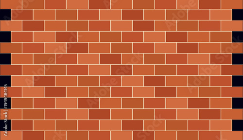 © Muhammad, Fototapeta premium Red brick wall seamless pattern with dark edges background texture