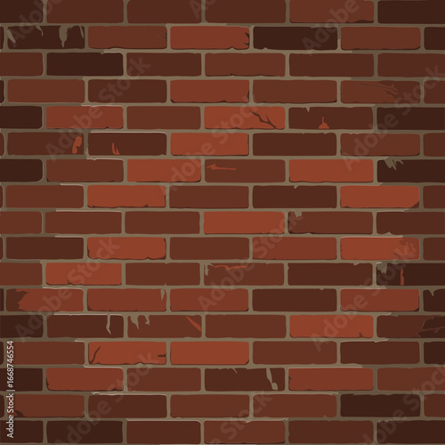 Obraz premium Red brick wall structure with varied tones in a seamless pattern. Architectural element of a building exterior with no people. Background image for design elements. General use.