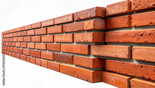 Obraz premium Red brick wall texture isolated on white background, modern brickwork pattern, construction material, architectural detail, building facade element