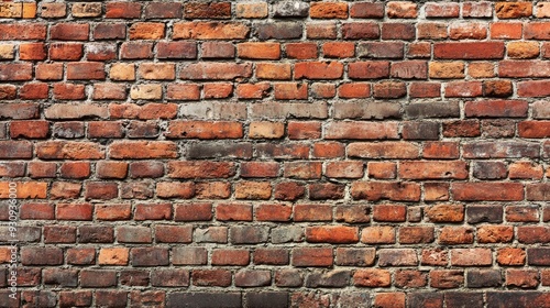© Dzikrul Husnani, Naklejka premium Red brick wall. Texture of old dark brown and red brick wall panoramic backgorund , ai