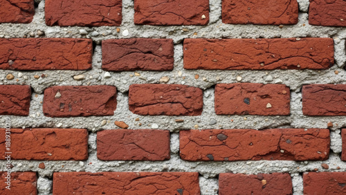 Obraz premium Red Brick Wall with Gray Mortar, Close-up Texture