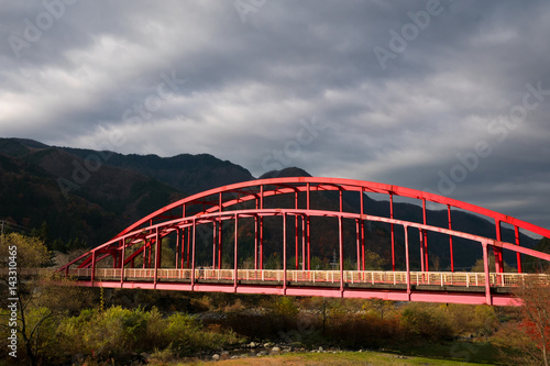 © luissybuster, Obraz premium Red bridge in Okuhida onsen.