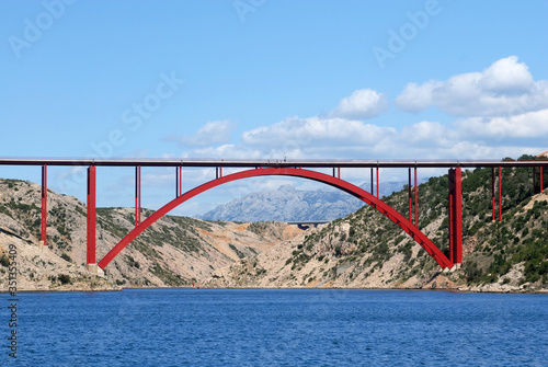 © Sergey, Fototapeta premium red bridge over the bay in Croatia