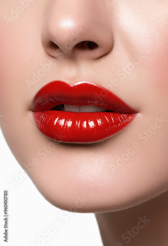 © Iveta, Fototapeta premium red bright lipstick on lips