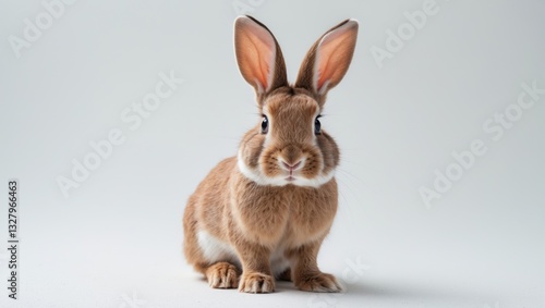 © GenZGraphics, Fototapeta premium Red bunny rabbit portrait facing the viewer against a white background.