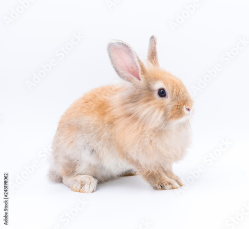 Fototapeta premium Red bunny rabbit portrait looking front wise on white background, Red bunny isolated for easter concept.
