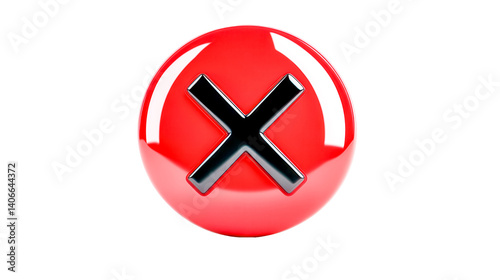 Fototapeta premium Red button showing black cross symbol on transparent background