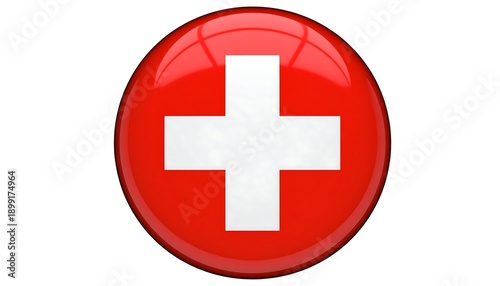 © Rombongan, Fototapeta premium Red Button with White Cross Symbol.