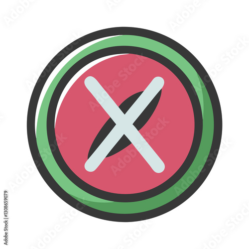 Obraz premium Red cancel button icon with green circular border