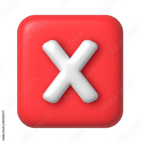 © Albina, Fototapeta premium Red Cancel cross icon isolated on transparent background. 3D rendering. Negative or decline sign 3d illustration. Red Interface button isolated on white.