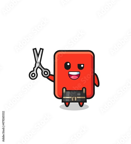 © heriyusuf, Fototapeta premium red card character as barbershop mascot
