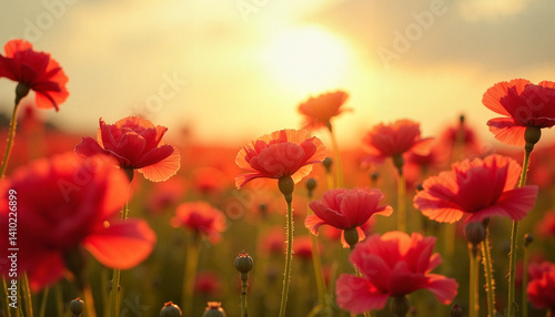 Naklejka premium Red Carnations at Sunrise for Victory Day