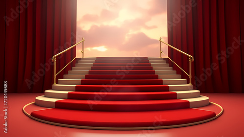 Fototapeta premium Red carpet staircase background, VIP entrance, night awards ceremony
