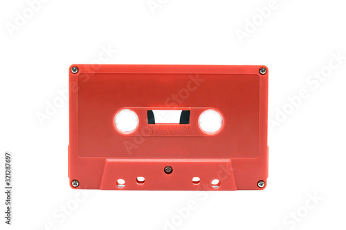 © thanakorn, Fototapeta premium Red cassette tape isolate on white background
