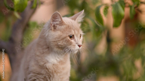 © fantom_rd, Fototapeta premium red cat among the foliage of a tree, a pet walking outdooors