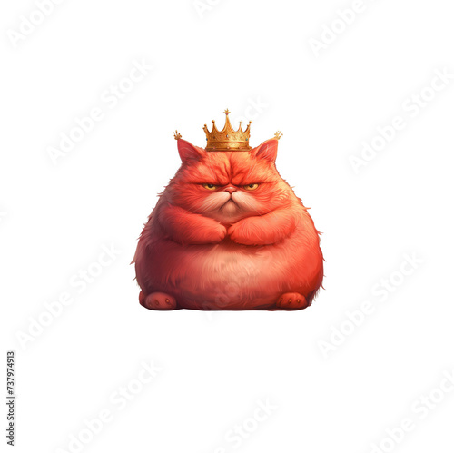 © Anastasiia, Obraz premium red cat cartoon angry fat animal crown illustration