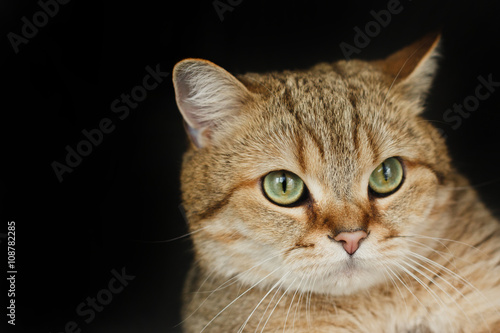 © Diflope, Obraz premium Red cat looking up sitting on black background