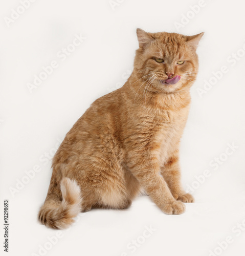 Obraz premium Red cat sitting on gray
