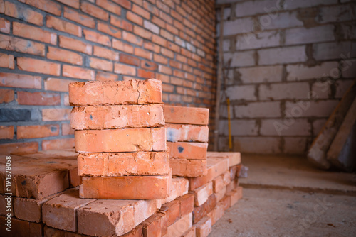 Obraz premium Red ceramic brick closeup stacked. building materials