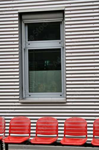 © PR-PhotoDesign, Fototapeta premium red chairs for metallic wall, background,