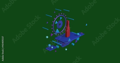 © Alexey, Obraz premium Red champagne symbol on a pedestal of abstract geometric shapes floating in the air. Abstract concept art with flying shapes in the center. 3d illustration on green background
