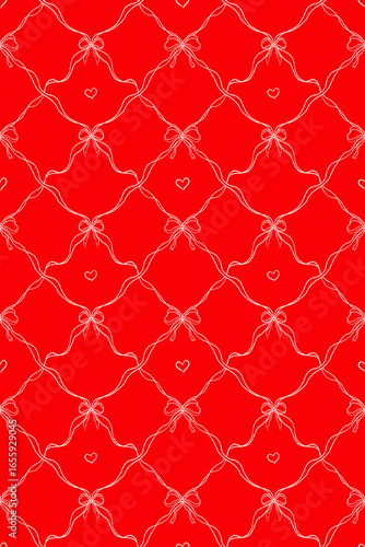 Obraz premium Red Checkerboard Bowknot Pattern Background. Cute seamless pattern design element for banner, poster, wallpaper, textile and gift wrapping paper.
