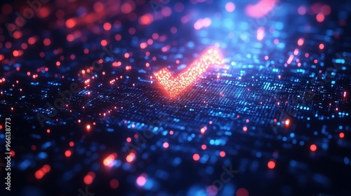 Obraz premium Red Checkmark on a Digital Blue and Red Background